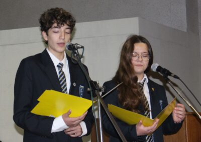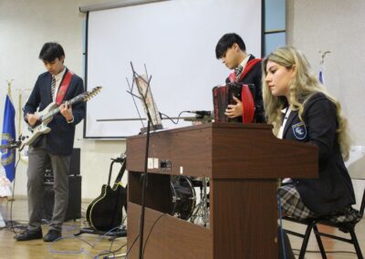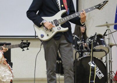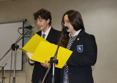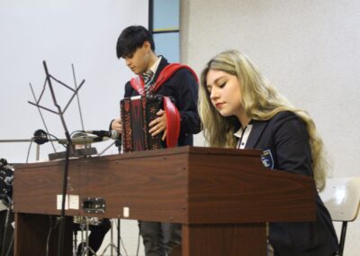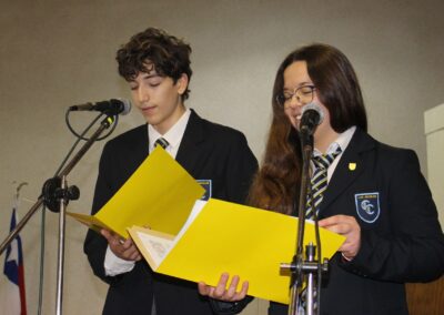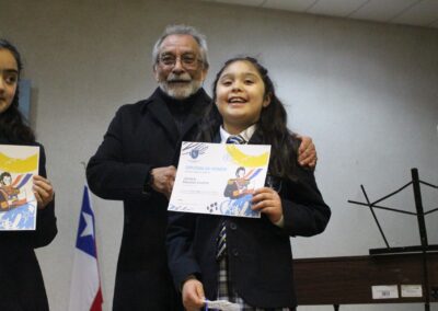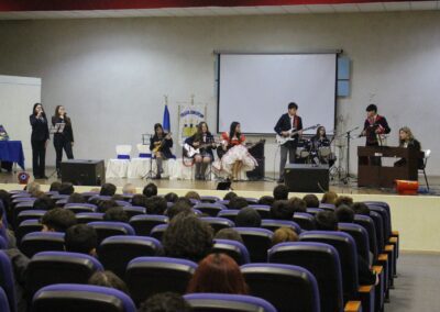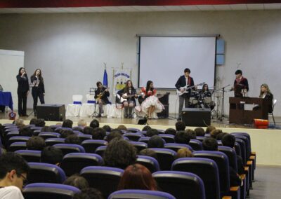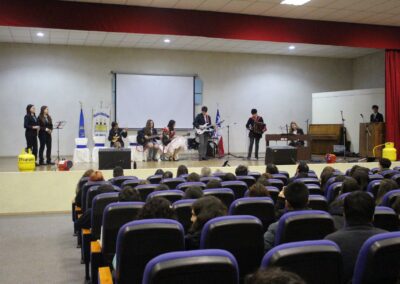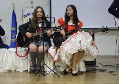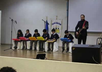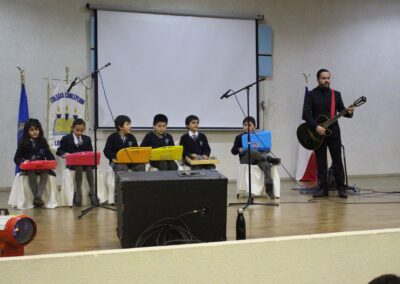 Siendo nuestro Padre de la Patria un ilustrado del siglo XIX, el acto centró su atención en su amor por el cultivo del conocimiento de su época. En este sentido y considerando que nuestro colegio también impulsa el desarrollo del arte y la cultura, se presentaron dos hermosas presentaciones musicales en su honor, a cargo de los cuartos electivos y de los segundos básicos, dirigidos por el señor Felipe Flores Sáez y Nadab Sandoval Iturra respectivamente.