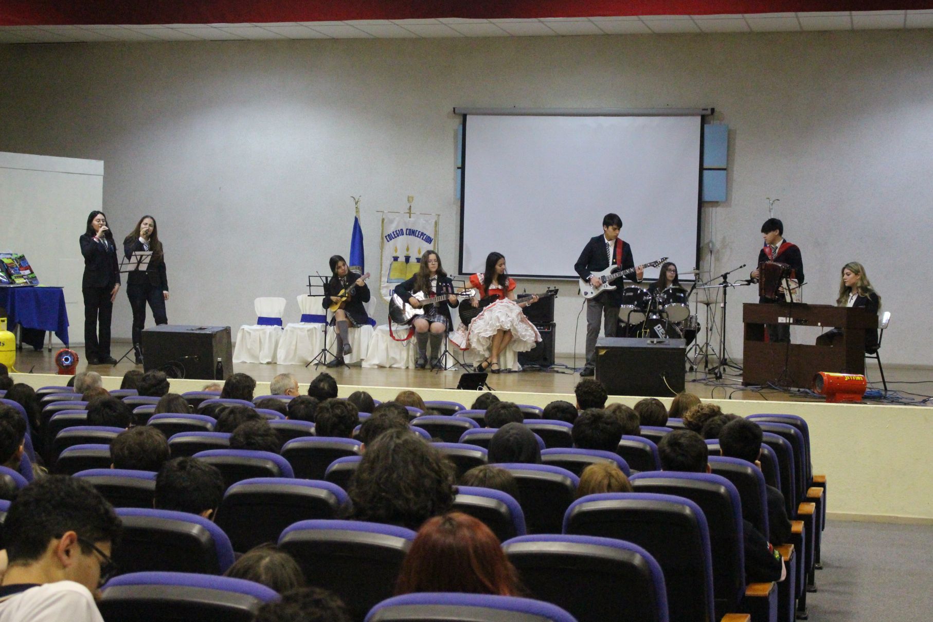 Electivo de Música cuartos medios: Marlyz Morales, Fredy Oñate, Sofía Caballero, Elizabeth Reinoso, Sergio Beroiza, Martina Sanhueza y Sandra Jaramillo.