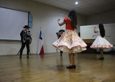 Finalmente el acto se cerró con dos piezas de nuestro baile nacional a cargo del Taller de Cueca de nuestro establecimiento dirigido por las señoritas Soledad Córdova Mellado y Monserrat Pérez Delgado.
