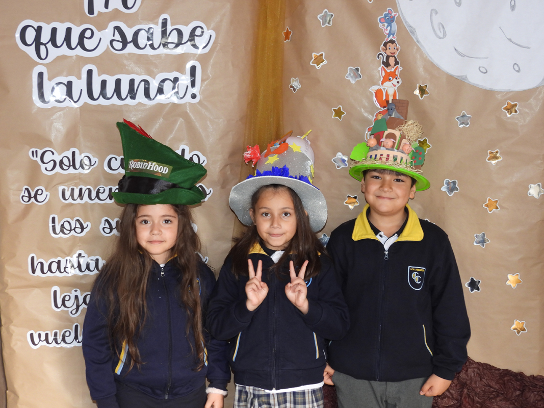 Continuando con el programa, los cursos de Primero a Cuarto Básico se dirigieron “ensombrerados” al auditorio a disfrutar de un simpático cuentacuentos preparado por la profesora Verena Bielefeldt Pino, ocasión en la que el ciclo pudo escuchar la historia de una vaca muy especial. La jornada prosiguió con un desfile de los niños con sus respectivos sus creaciones estéticas y literarias materializadas en el ya mencionado “sombrero”, donde se premió a los más creativos y originales.