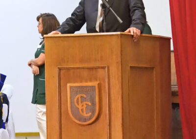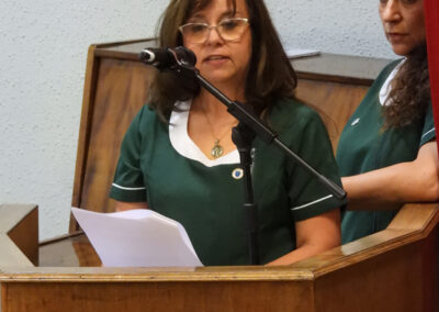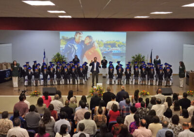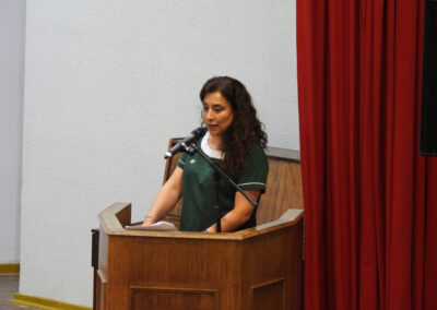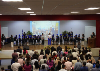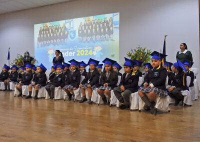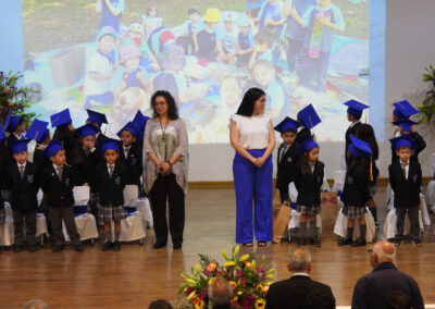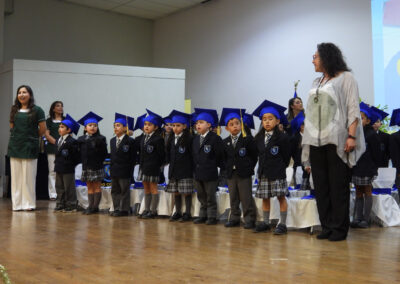 Ya finalizando la ceremonia, se interpretó el himno del colegio para que enseguida, las profesoras de Primeros Básicos Año Escolar 2025, señora Verena Bielefeldt Pino y . Vanessa Marchant Lizama, en reemplazo de la señorita Claudia Segura Cruces, abandonaran el salón auditorio acompañados por sus futuros estudiantes de los Primeros Básicos 2025.