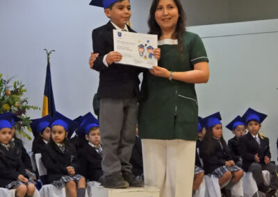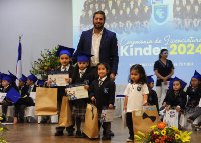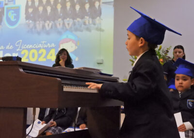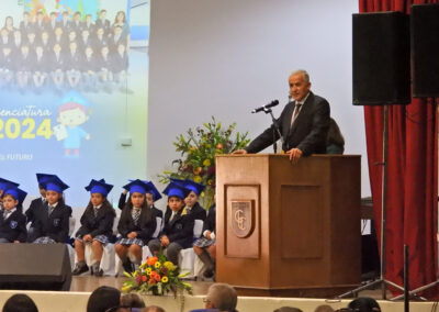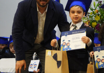 Los discursos de despedida y agradecimientos correspondientes estuvieron a cargo de los estudiantes Enzo Brovelli Torres (Kinder “A”) y Rafael Reyes Figueroa (Kinder “B”) y en nombre de los apoderados, el señor Bernardo Fernández Vidal, todos los cuales fueron precedidos por hermosos números musicales interpretados por Renato León Caroca de 1° Básico “B”, y Francisco Rodríguez Cabrera del kinder “A”.
