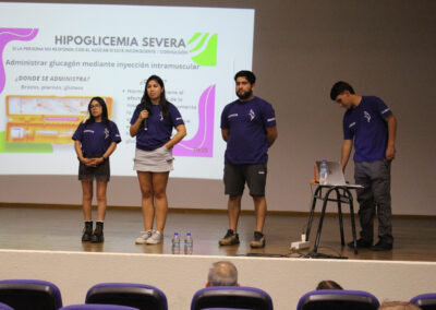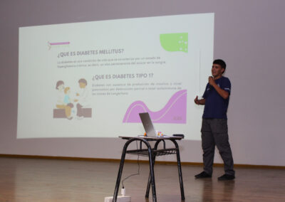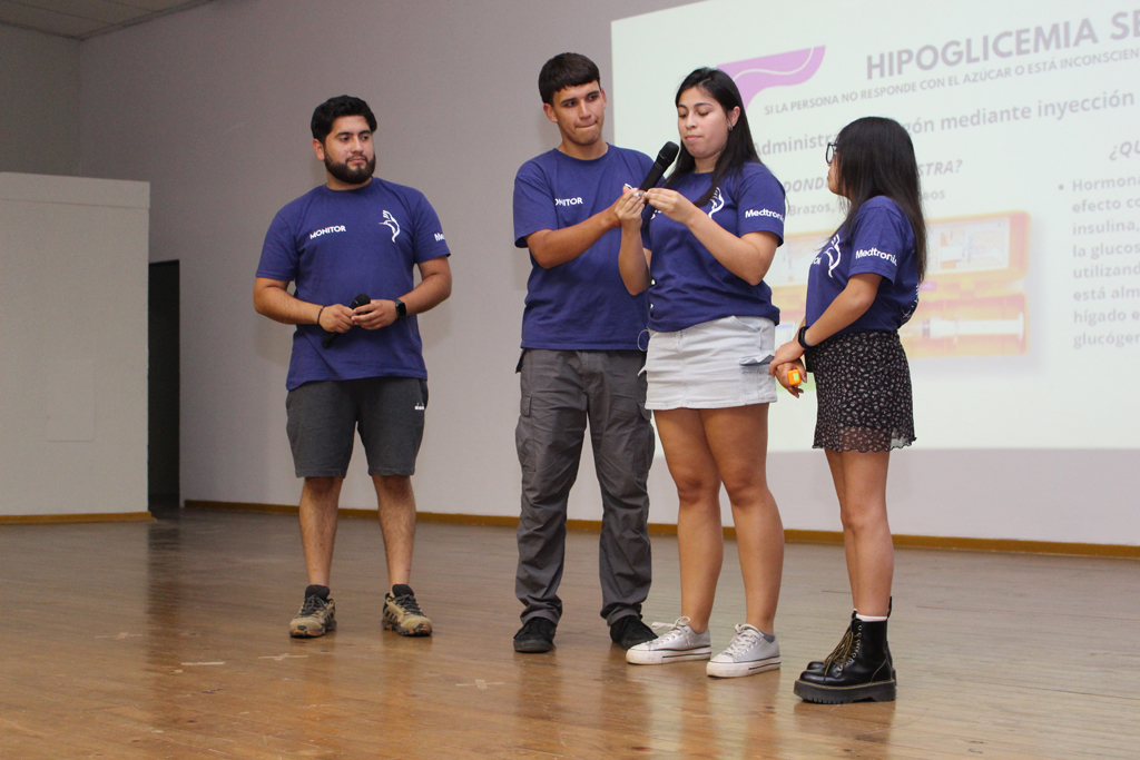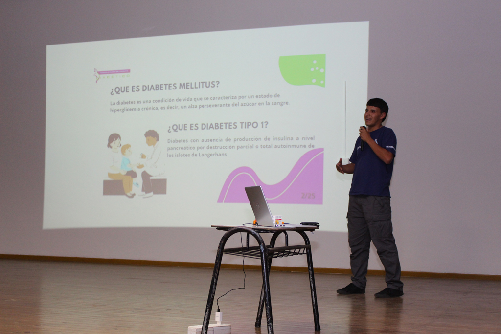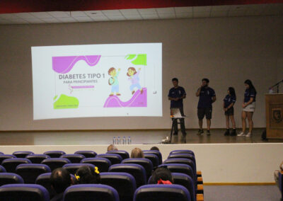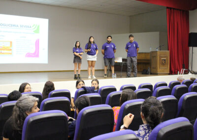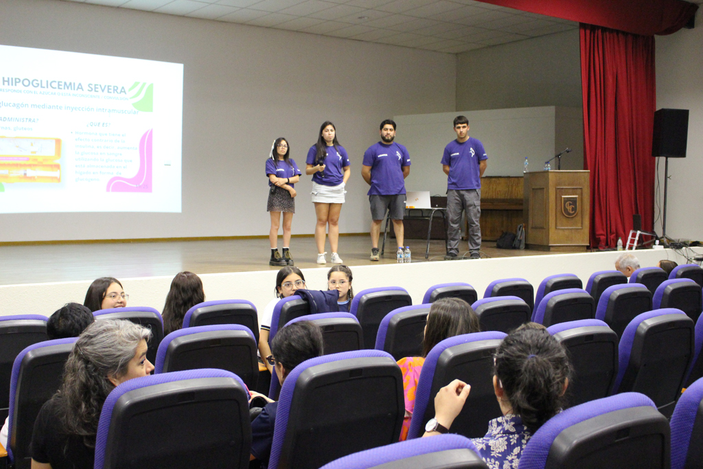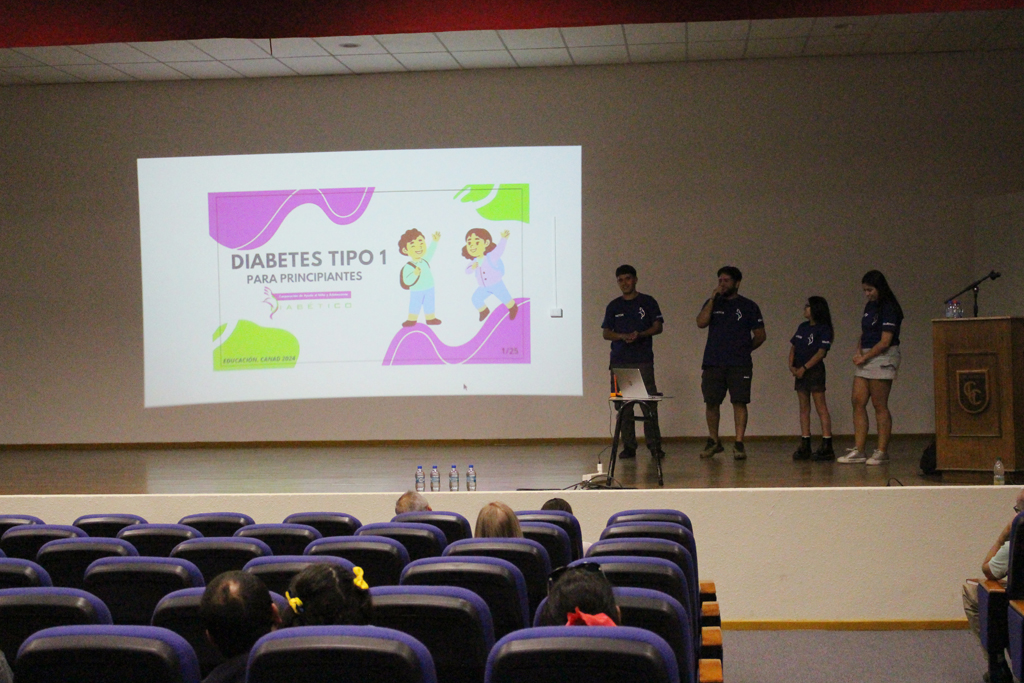 En horas de la tarde del pasado miércoles 12, gran parte del personal de nuestro colegio, padres y apoderados y, también algunos estudiantes, se congregaron en el salón auditorio para ser partícipes de una charla dictada por la Corporación Diabéticos de Concepción, dirigida por su directora, la señorita Catalina Toledo Ávila más tres de sus integrantes, quienes en una educativa y motivadora exposición dieron a conocer los pormenores sobre dicha condición abarcando los tipos de diabetes, su sintomatología y tratamiento, todo ello enmarcado en la preocupación de nuestro establecimiento por casos que son muy cercanos y que afectan a algunos de nuestros estudiantes y sus familias. La idea fundamental no solo era informarse sino también ver la forma de reaccionar frente a sucesos que pueden afectarlos.