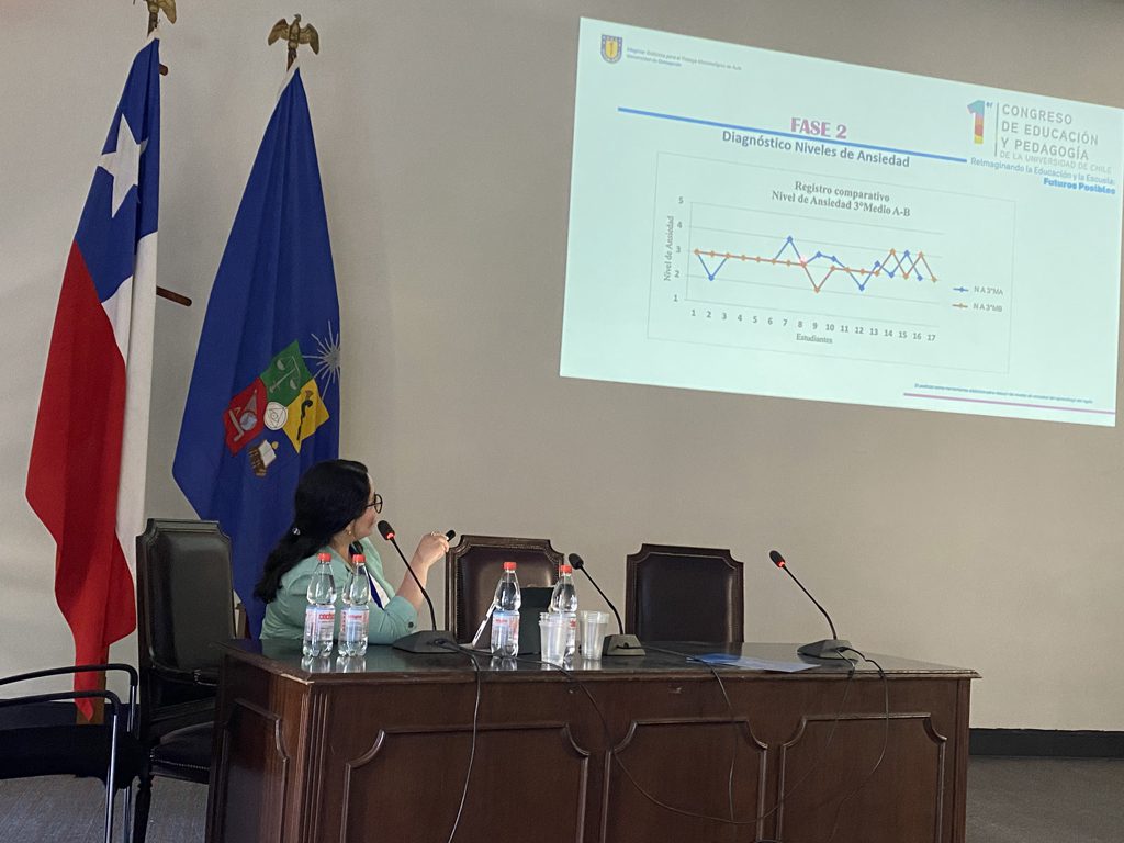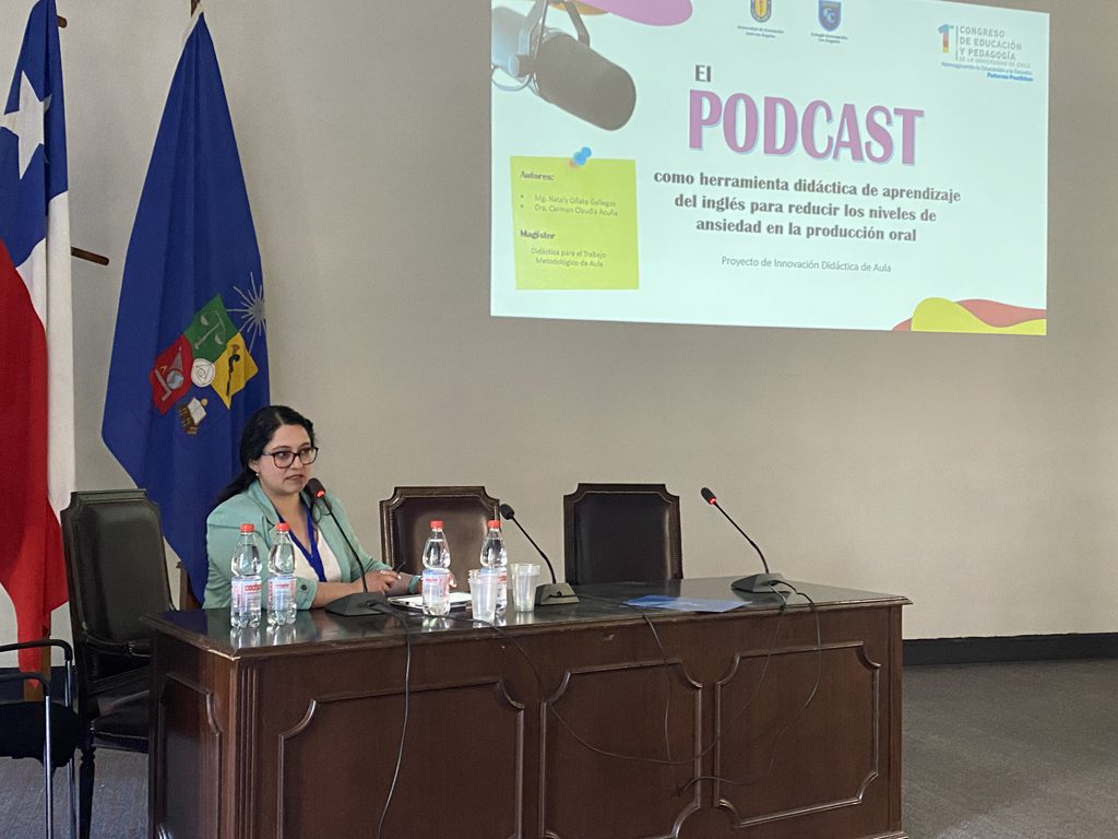 El estudio fue presentado en la categoría de innovación tecnológica en la enseñanza, cuya ponencia explicó el efecto del uso y creación de podcasts en los niveles de ansiedad de los estudiantes en la producción oral del idioma inglés. El proyecto fue desarrollado en estudiantes de tercero medio durante el año 2021, aplicado el año siguiente y sus resultados obtenidos el 2023. Los principales resultados arrojaron que el uso del podcast tuvo un efecto positivo en el aprendizaje del idioma, el cual redujo los niveles de ansiedad, mejoró la fluidez y la pronunciación de los estudiantes, así como también fomentó el aprendizaje autónomo y colaborativo entre los estudiantes. Finalmente, en la ponencia se compartieron los beneficios de esta metodología de aprendizaje, donde se evidenció que el uso y creación de podcasts mejoró el dominio de la lengua extranjera, aumentó la motivación, la autoconfianza y ayudó a los estudiantes a perder el miedo al momento de hacer uso del idioma inglés oralmente.