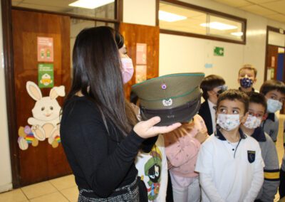 El día 27 de abril, nuestros pequeños compañeros del Primer Ciclo Básico, tiñeron de verde su pabellón al dar vida a una hermosa exposición cuyo tema central fue mostrar la evolución de los diferentes atuendos y elementos de trabajo de Carabineros de Chile a lo largo de su historia institucional.