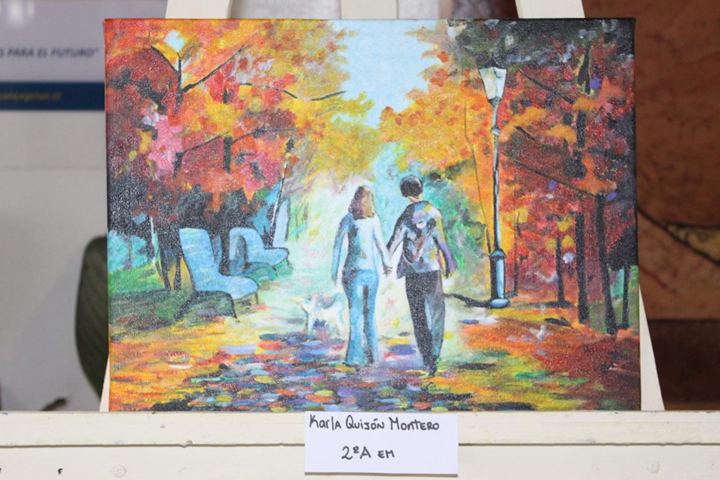 Regresando de las vacaciones de invierno, la comunidad estudiantil se encontró con una hermosa exposición de pinturas realizadas utilizando la técnica del acrílico sobre tela pertenecientes a algunos alumnos del segundo año medio “a”, todas ellas inspiradas en la representación de la figura humana como tema central, muestra que fue el resultado de todo lo aprendido durante el primer y parte del segundo trimestre en la asignatura de Artes Visuales a cargo de la profesora Patricia Fariña. Los expositores fueron Catalina Pacheco, Vicente Candia, Sebastián Echeverria, Benjamín Chávez. Paul Santos, Fernanda Garrido, Karla Quijón y Karina Quijón, todos los cuales recibieron las felicitaciones de sus profesores y compañeros por el bellísimo.