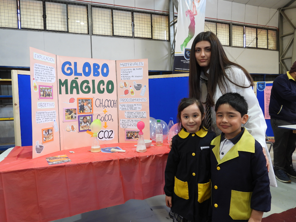 Ya en día martes 14 del presente, se abrió oficialmente la exposición donde casi 80 estudiantes desde play group a cuarto medio, mostraron el resultado de sus trabajos, e investigaciones materializadas en paneles, afiches y experimentos in situ, que como siempre capturaron el interés por la Ciencia y Tecnología. Temas como “Crispr y la edición genética”, “tipos de suelos””, “caries, el enemigo invisible de tu sonrisa”, “Movimiento circular uniforme”, “Fuerza centrífuga”, “Qué es el MCU”, “Prisión Hidrostática”, “La lámpara de lava”, “Leyes de los gases”, “Espectroscopio”, “Bohr, el agujero atómico”, “Globo mágico”, “Hidrolisis”, entre muchos otros, colmaron cada uno de los espacios del gimnasio principal.