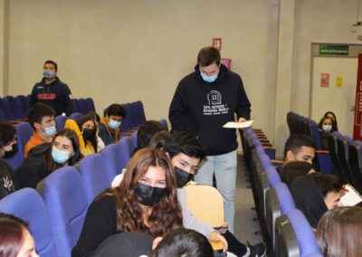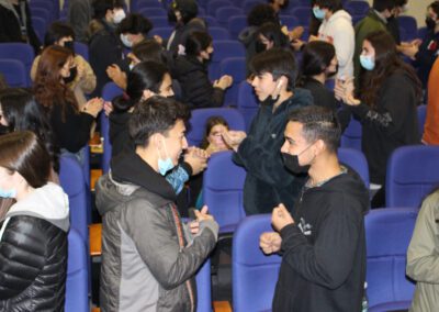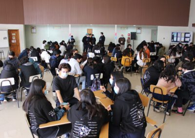 En la jornada además participaron los directivos del colegio y orientador, quienes entregaron el saludo de bienvenida y recordaron las normas básicas de buena educación para recibir a los expositores y facilitar su trabajo, además de intervenir esporádicamente para recordar ciertos temas que conviene reforzar permanentemente en los alumnos, como lo es el obtener un buen puntaje NEM para acceder a beneficios y tener mayores posibilidades en el proceso de selección universitaria.