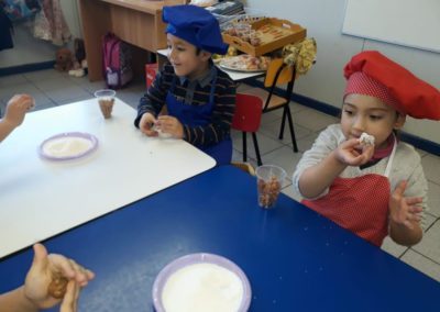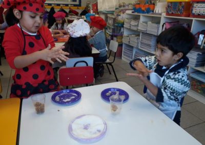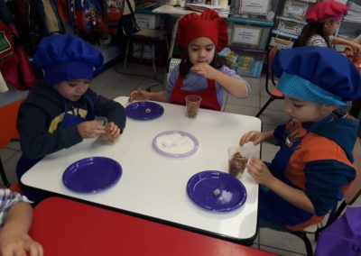 Las matemáticas y sus figuras geométricas, el país de las letras y el conocimiento de la letra “M” y la cocina preparando sus propios alimentos, fueron algunas de las temáticas y actividades realizadas por el Kínder A y B y los Pre Kínder A y B durante el mes de Julio. Provistos de sus respectivos materiales, siguiendo detalladamente las instrucciones de sus tías y, sobre todo de una gran motivación personal, estos pequeños aprendieron jugando y haciendo, hecho que demuestra que la creatividad, la imaginación, las ganas y la didáctica, son una potente herramienta que conduce a aprendizajes permanentes y significativos.