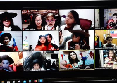 En este contexto los Pre-Kínder “A” y “B”, de las tías Mabel Villagra y Leslie Pitripán sumergieron a sus pequeños alumnos en el estudio y valoración de los símbolos patrios, nuestras comidas, través y bailes típicos que fueron presentados por zonas geográficas. De esta manera chinitas, rotitos huasos y huasitas, participaron vía online desde sus hogares, detrás de los cuales se plegaron sus padres, quienes también disfrutaron de este espacio de tradición, historia y recreación.