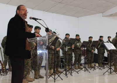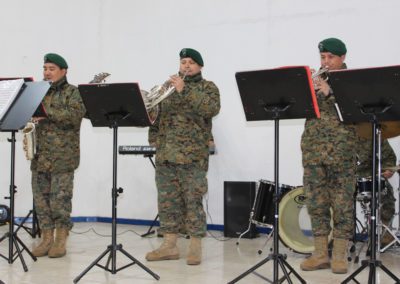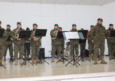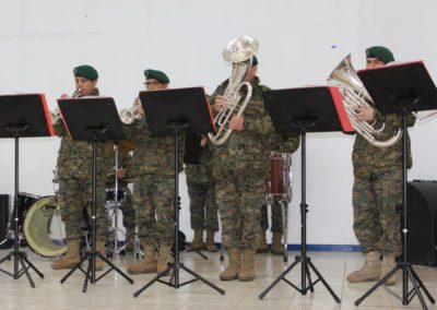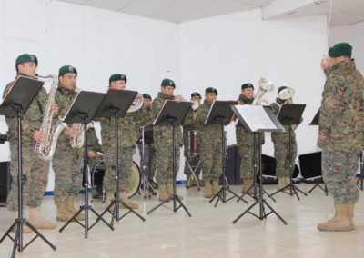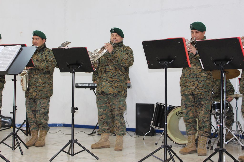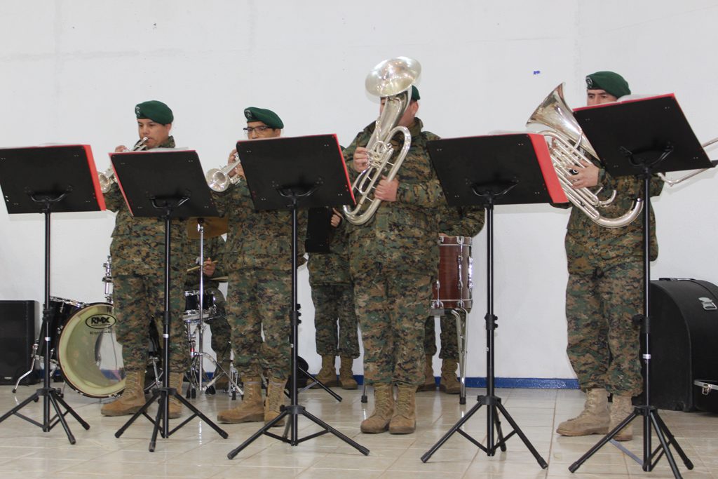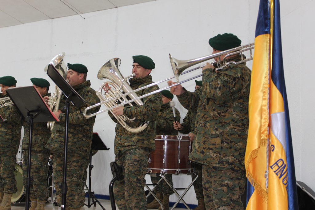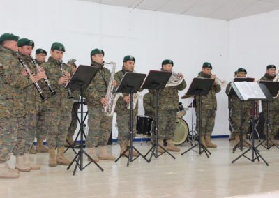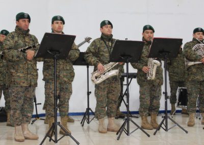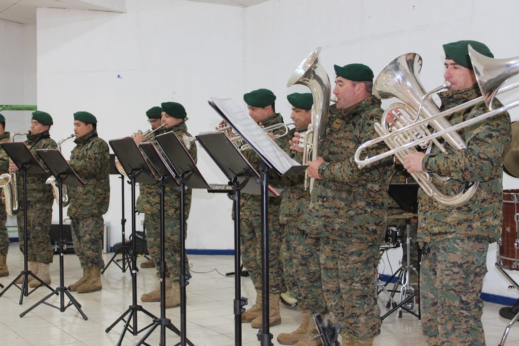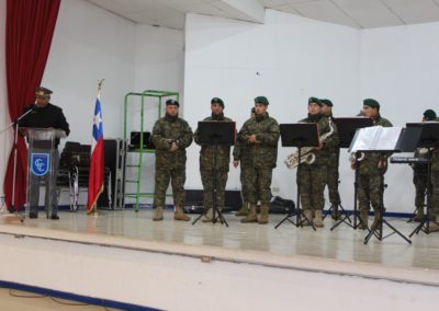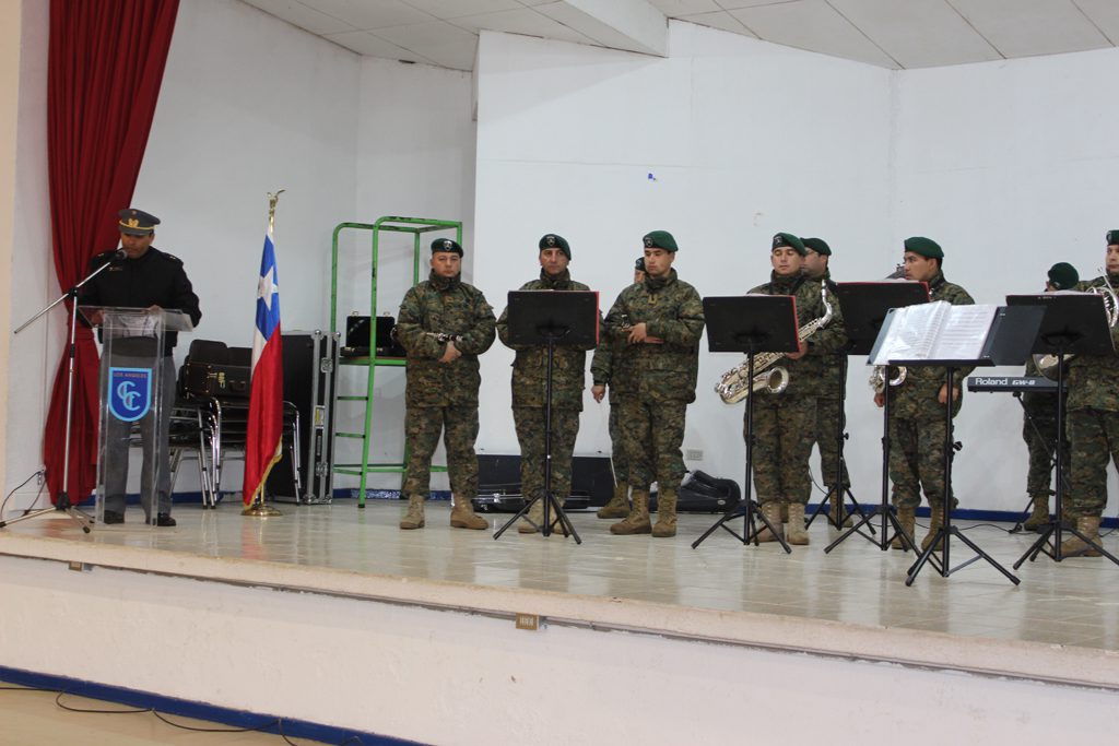 El día lunes 09 tuvimos la visita de la banda instrumental del Regimiento Reforzado N° 17 de Montaña de la ciudad de Los Ángeles, quien hizo una notable presentación de variado temas musicales que deleitaron a todo el alumnado del Colegio, que en masa acudió a esta presentación y en donde los aires de chilenidad colmaron cada espacio del gimnasio principal. Fue una interesante actividad donde la alocución patriótica estuvo a cargo del teniente Paulo Muñoz y donde se hizo una síntesis del proceso que culminó con nuestra independencia nacional. A juicio de los presentes, esta fue una instancia que contribuyó a enriquecer y estrechar los lazos entre el mundo civil y militar.