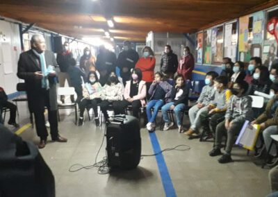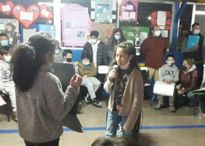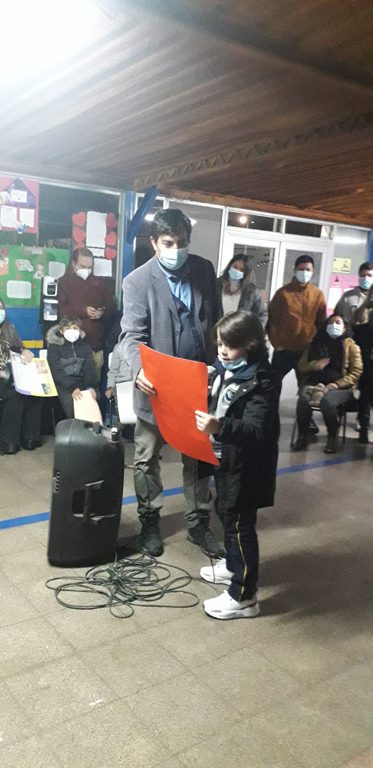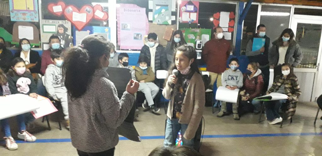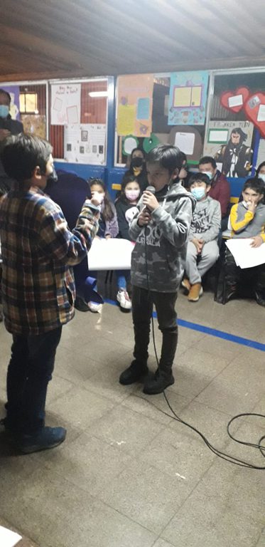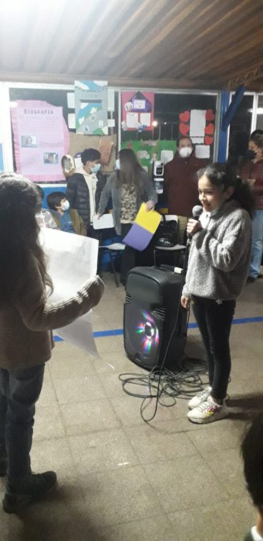 Enmarcada dentro del “Día del Libro”, los alumnos del cuarto año básico “b”, dirigidos por su profesor jefe, señor Héctor Zúñiga, llevaron a cabo la realización de una “Tertulia Literaria”, todo ello con la finalidad de incentivar el proceso expansivo y la creatividad literaria, entre otros objetivos. Allí rodeados de sus padres y apoderados, invitados y funcionarios del establecimiento, los pequeños dieron vida a una entretenida conversación literaria basada en cuentos de creación personal, que reflejaron su bello mundo interior al que solo le bastan pequeños incentivos para dar rienda suelta a su increíble imaginación.