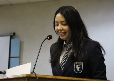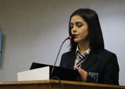 En el acto dirigido por la profesora Tatiana Gavilán, se tomó el juramento de rigor a sus nuevos integrantes donde básicamente se comprometieron a trabajar en pro de los intereses de sus compañeros y del colegio en general. En la ocasión el señor Heraldo Barriga, se dirigió a los presentes señalando que el camino “no es solo la crítica fácil o improductiva, sino más bien aquel en el que se aportan ideas, trabajo y responsabilidad. Ser líder no es fácil ni gratis. Tiene sus costos y, por ello, felicito a esta nueva directiva, al asumir tal desafío”.