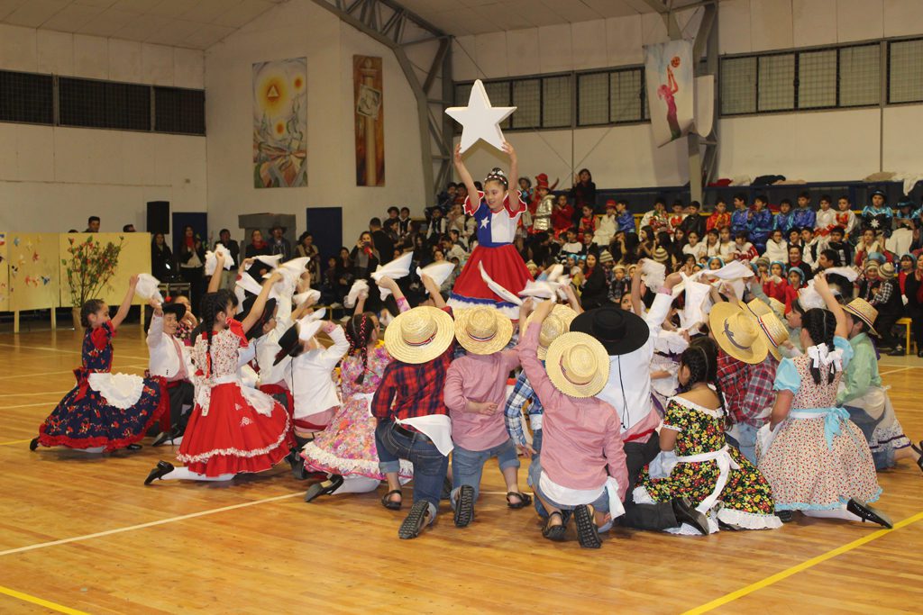 Como todos los años el Primer Ciclo Básico dio vida a la tradicional Velada Musical inspirada en las raíces más profundas del folclore nacional. Una vez más y con una gracia, dulzura, picardía y talento sin igual, los cursos fueron pasando a la parte central de nuestro gimnasio para representar los bailes y vestimentas de las cuatro grandes zonas geográficas y culturales de nuestro territorio nacional. De esta manera los terceros básicos abrieron la presentación mostrando lo más representativo de la zona norte. Fue así como aparecieron ante el público presente las diabladas, corporales y trotes en lo que denominó “carnaval nortino”. Siguiendo la ruta geográfica-folclórica, los cuartos básicos se hicieron cargo de la zona central, cuna del “huaso” chileno. La tonada, chapecao, polka y la cueca se tomaron el escenario. Tras ello apareció la zona sur, donde los primeros básicos bailaron al compás de la guitarra, charranco, bombo, acordeón y rabel, la denominada “minga de Chiloé”. El recorrido finalizó con la presentación de la zona austral donde los segundos básicos dieron vida a la “fantasía patagónica”, tierra de onas, yaganes y kaweskar y donde la espiritualidad quedó plasmada en movimientos coreográficos difíciles de olvidar.