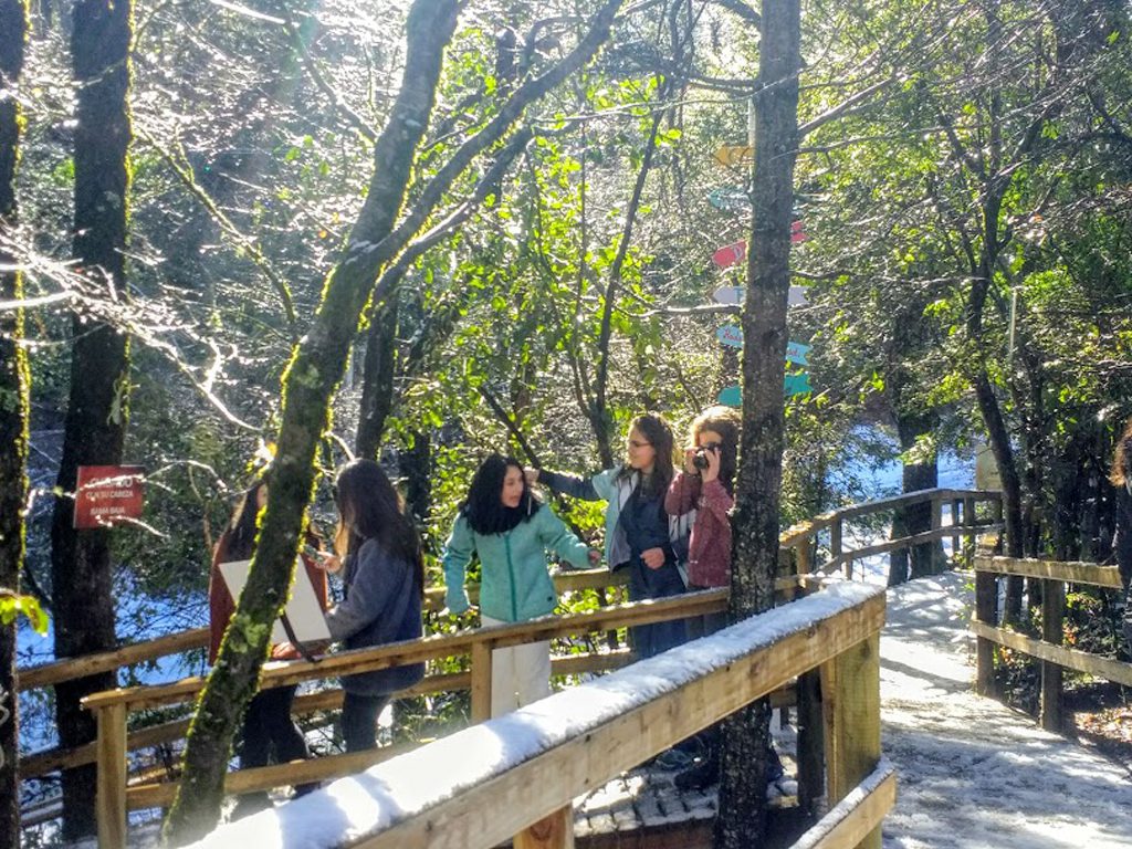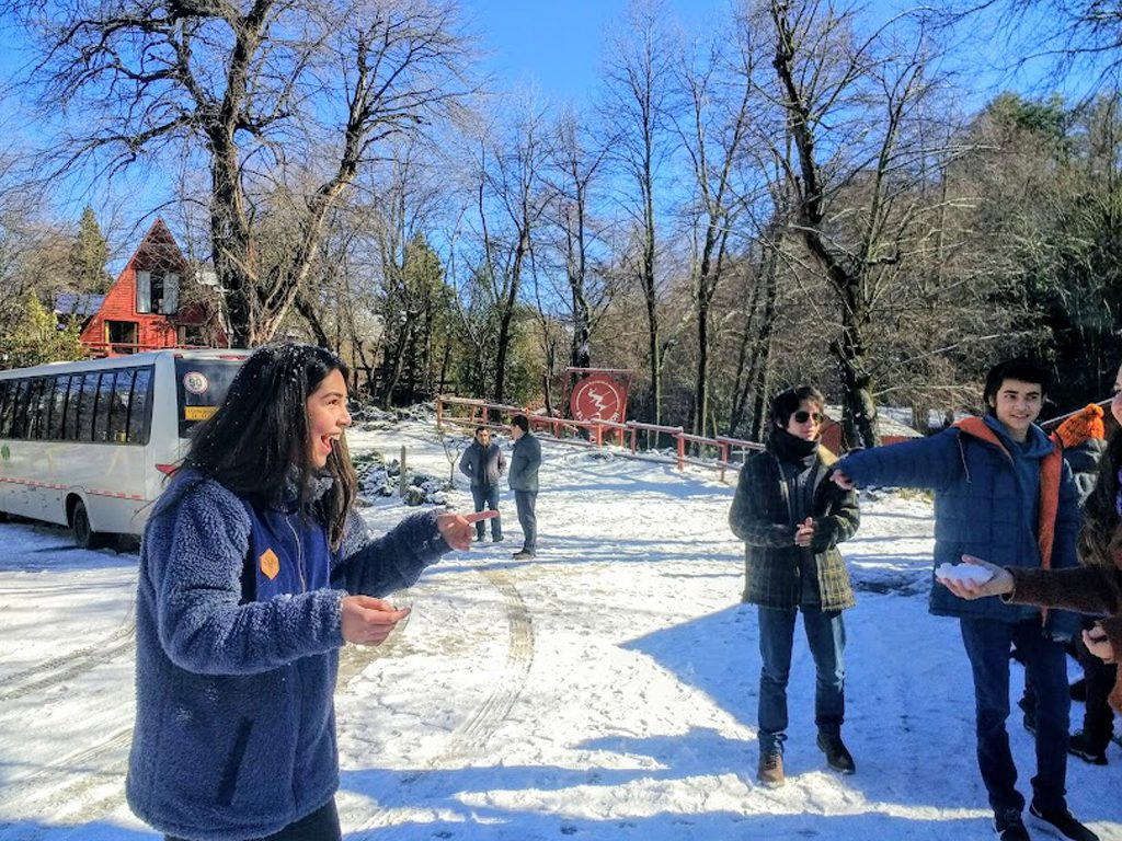 Para hacer de la educación una experiencia memorable e integral y para que los alumnos del Octavo Año Básico “A” puedan desenvolverse en distintos escenarios, compartir emociones y poner en práctica los valores y normas de convivencia es que desde el año pasado los padres y apoderados del curso han venido organizando distintas actividades y salidas educativas y solidarias. Es así, como muy temprano en la mañana del lunes 12 de agosto emprendimos un largo viaje con destino al Parque Mitológico Bosque Encantado en la localidad de Pinto, cercana a Chillán, donde la nieve y un clima maravilloso nos dio la bienvenida. Los chicos, entusiasmados recorrieron el mágico bosque donde se encontraron con hadas, magos, unicornios y diversos seres mitológicos. Luego, muy felices disfrutaron jugando y deslizándose en la nieve.