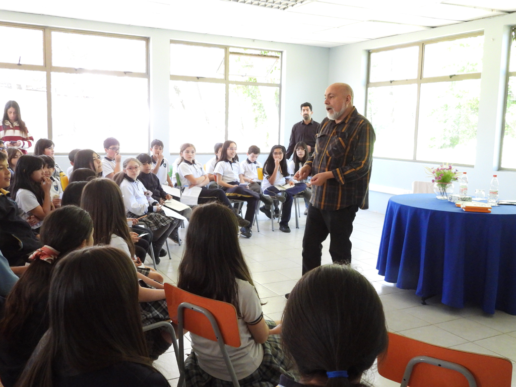 Después de escucharle, los estudiantes de los cursos mencionados pudieron realizarles preguntas acerca de sí mismo y sus obras, las que él respondió atentamente y con mucha simpatía que le permitió llevarse la admiración de los niños asistentes.